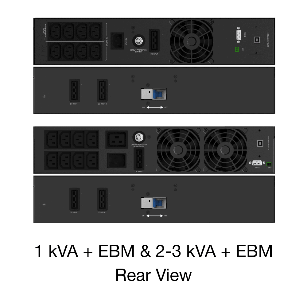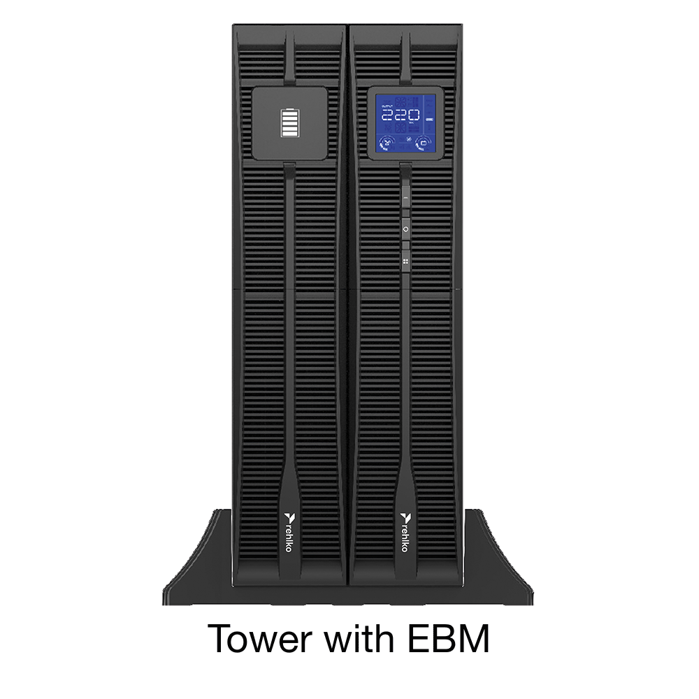 The Rehlko PW 1000RM is available in 5 ratings; 1 kVA, 2 kVA, 3 kVA, 6 kVA and 10 kVA. Each of these has internal batteries and the option to add an uprated battery charger and External Battery Module to allow extended autonomies.