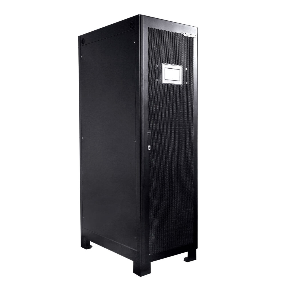 Parallelable to 32 battery modules, each REVO TP cabinet comprises 10, 11 or 12 LiFePO4 battery modules of 50Ah or 100Ah each. This provides a range of energies per cabinet of 25.6, 28.2, 30.7, 51.2, 56.3 and 61.4kWh or 10 minutes autonomy at powers of 114, 125, 137, 228, 251 and 274kW respectively.
